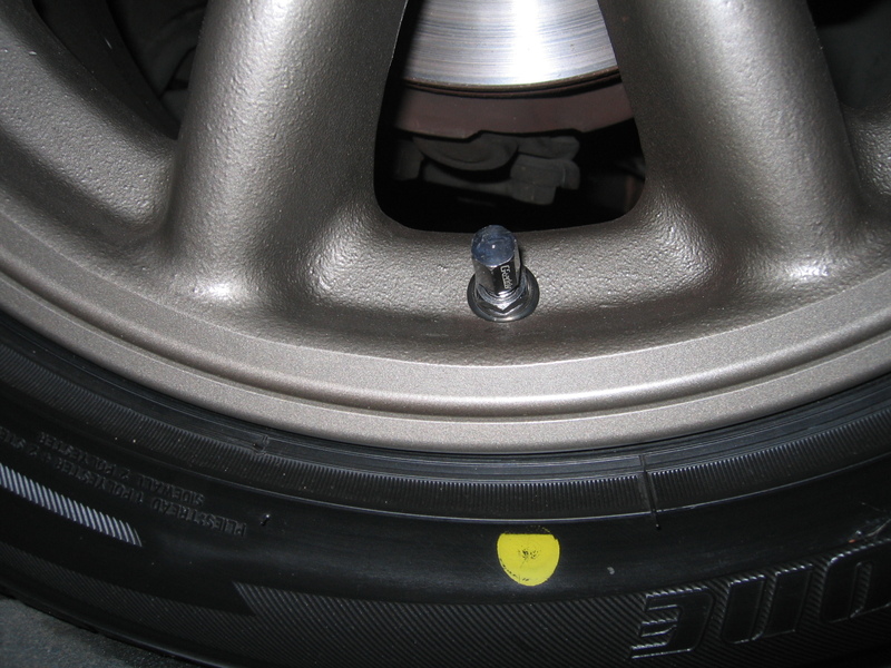 จุดสีเหลืองนี้ เรียกว่าจุด weight mark ซึ่งผู้ผลิตยางรถยนต์ จะทำเครื่องหมายด้วยการแต้มสีลงบนส่วนที่เบาที่สุดของยาง เพื่อให้ช่างทราบว่า ส่วนใดมีน้ำหนัดเบาที่สุด บนยางรถยนต์เส้นนี้ และก็ควรใส่ยางโดยเอาจุ๊บลม (ซึ่งมีน้ำหนักถ่วง) ให้ตรงกับจุดสีเหลืองนั้น เพื่อที่จะได้เกิดความสมมาตรมากที่สุด เวลาที่ถ่วงล้อ