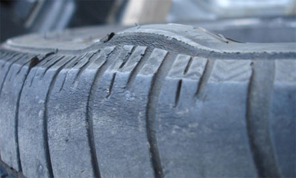 ยางบวม : ถ้าหากตรวจพบว่ายางมีลักษณะ บวม ปูด นูน ออกมาจากปกติ ต้องรีบเปลี่ยนยางโดยทันที เพราะอาการนี้ อาจทำให้ยางระเบิดได้