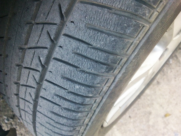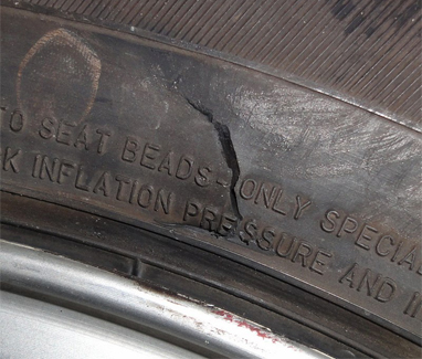 แก้มยางแตก, มีรอยร้าว : ข้อนี้สามารถตรวจสอบได้ด้วยตาเปล่าของตัวเอง พยายามหมั่นตรวจสอบกันอยู่เสมอนะครับ ถ้าหากพบเห็นรอยแตกหรือร้าว ต้องรีบเปลี่ยนยางโดยด่วน เพราะอาจเป็นสาเหตุให้ยางระเบิดได้ เมื่อขับรถด้วยความเร็ว
